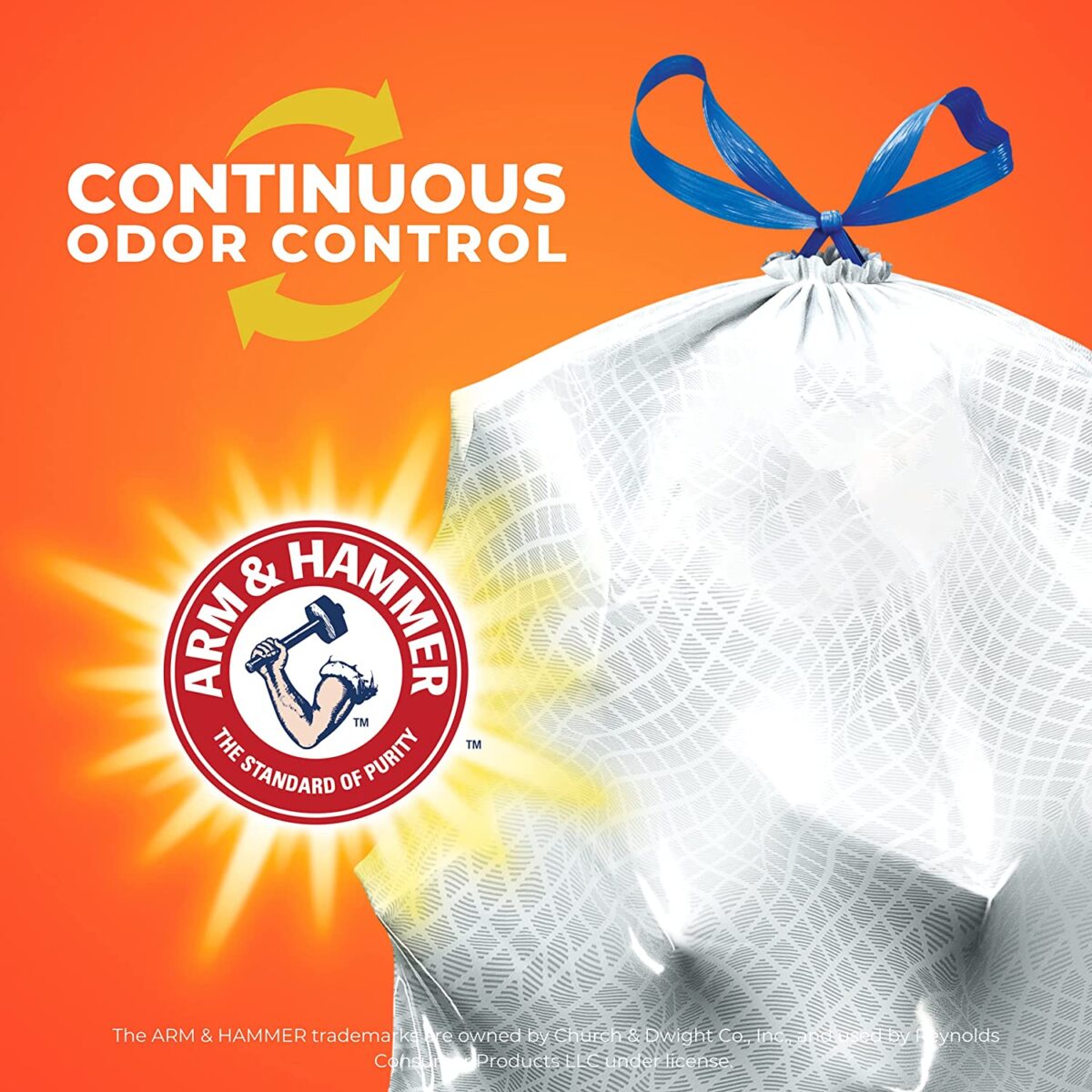 - TRIPLE-ACTION TECHNOLOGY—These kitchen garbage bags, stretch and expand to accommodate oversized loads without punctures, leaks or tears