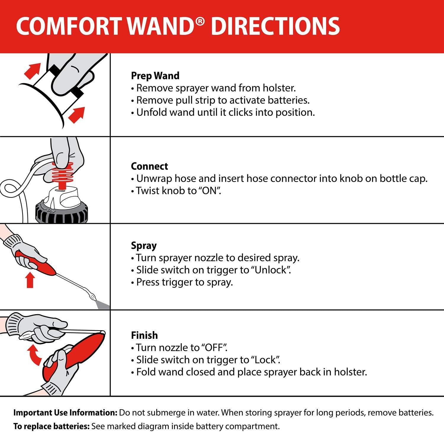 - WAND MAKES APPLICATION EASY: The Comfort Wand eliminates hand fatigue, and there’s no pumping required, making it easy to spray along your home’s perimeter–indoors and outside